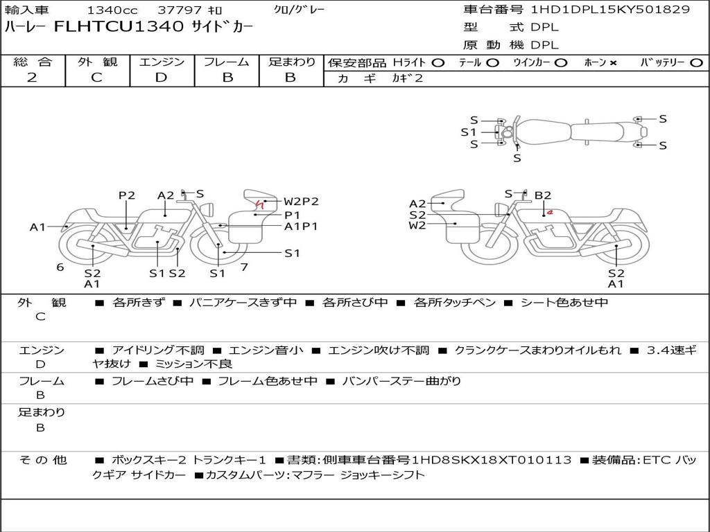 | Номер рамы / VIN | 1HD1DPL15KY501829 |