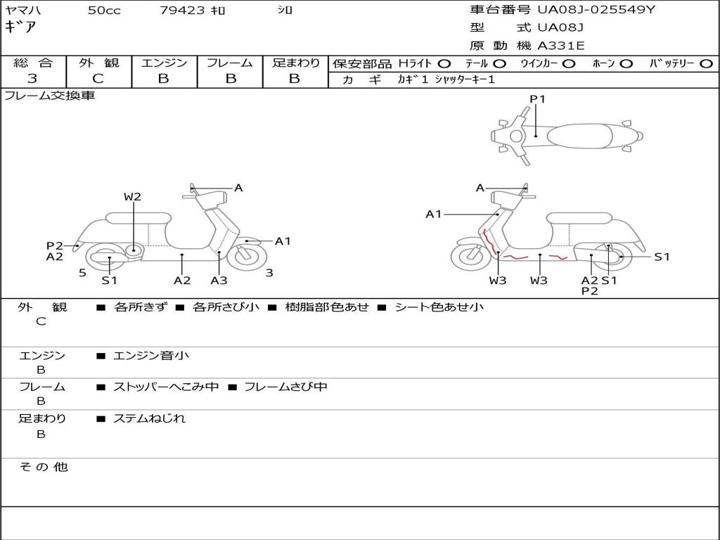 | Номер рамы / VIN | UA08J-025549Y |