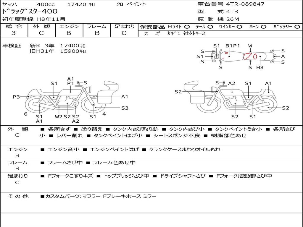 | Номер рамы / VIN | 4TR-089847 |