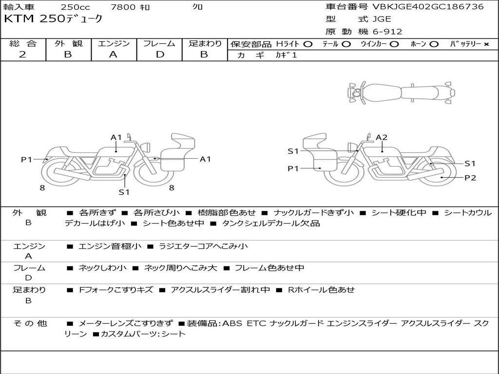 | Номер рамы / VIN | VBKJGE402GC186736 |