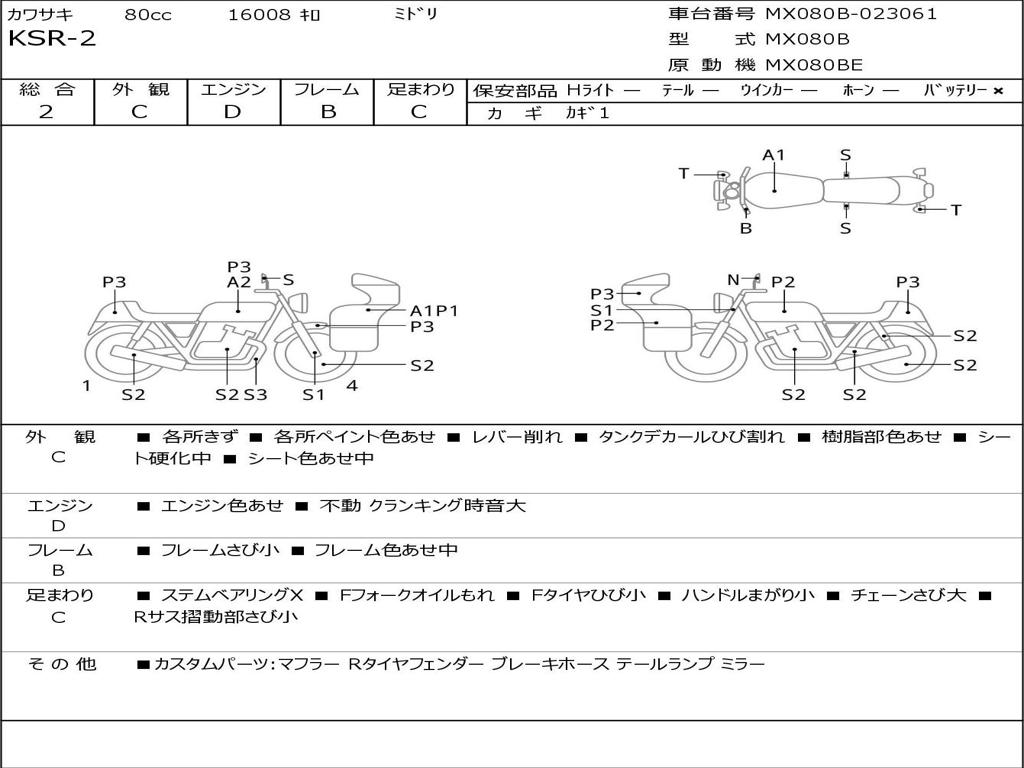 | Номер рамы / VIN | MX080B-023061 |
