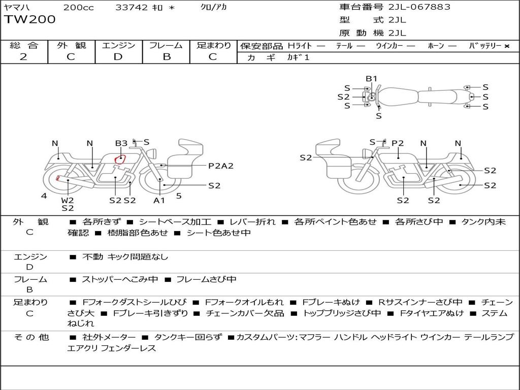 | Номер рамы / VIN | 2JL-067883 |