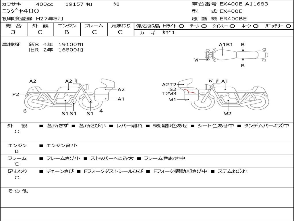 | Номер рамы / VIN | EX400E-A11683 |