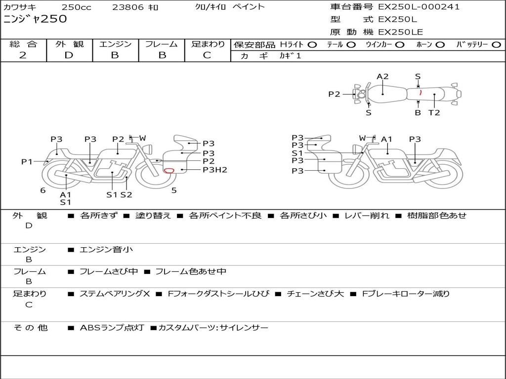 | Номер рамы / VIN | EX250L-000241 |