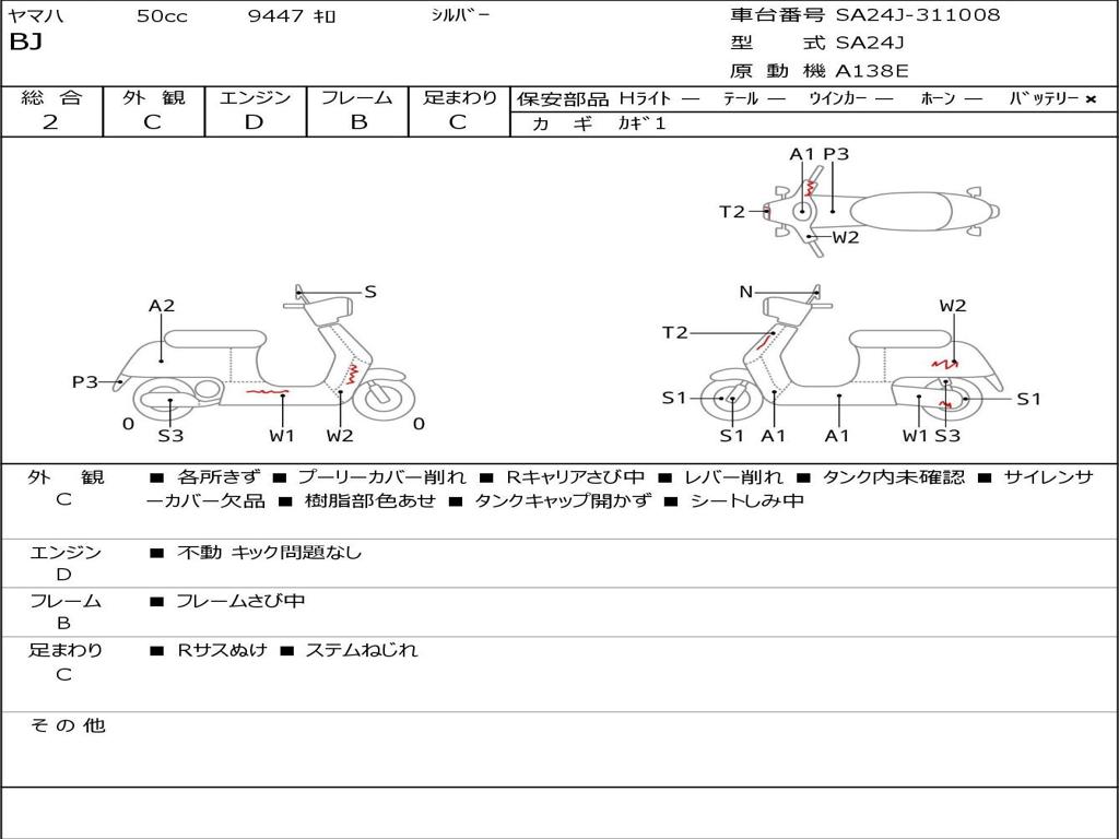 | Номер рамы / VIN | SA24J-311008 |