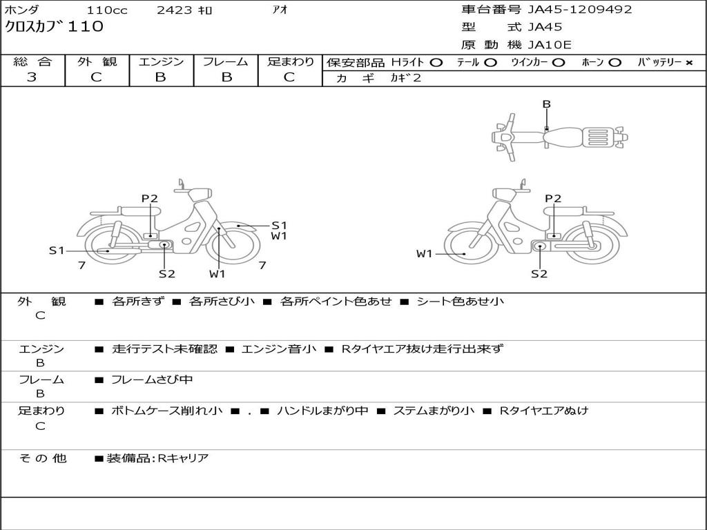 | Номер рамы / VIN | JA45-1209492 |