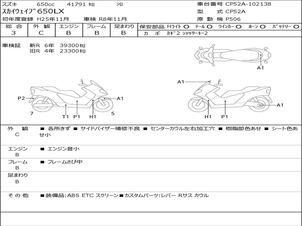 | Номер рамы / VIN | CP52A-102138 |