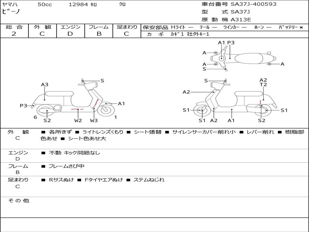 | Номер рамы / VIN | SA37J-400593 |