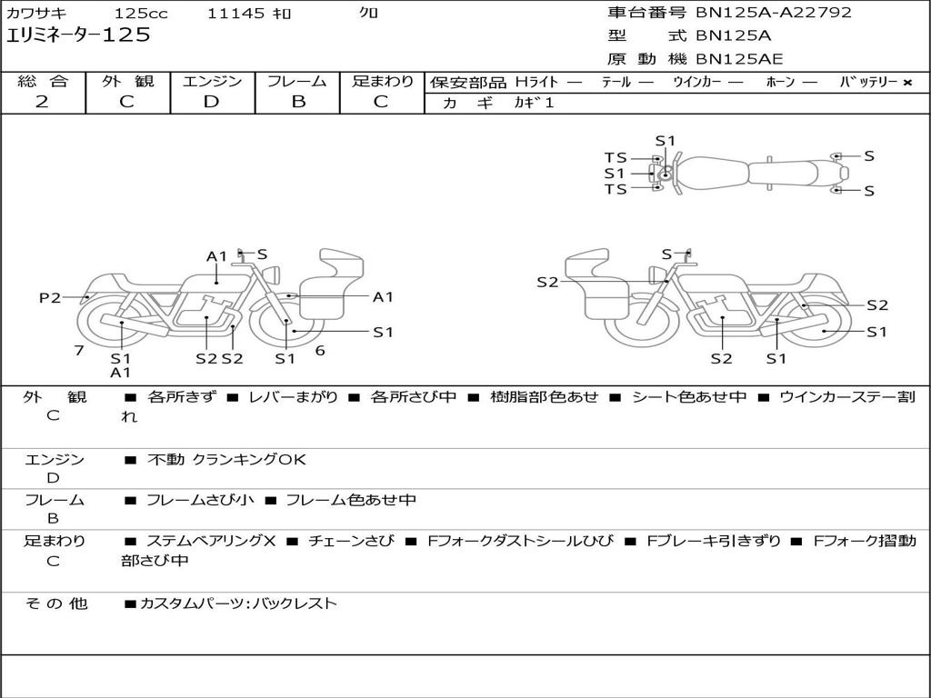 | Номер рамы / VIN | BN125A-A22792 |