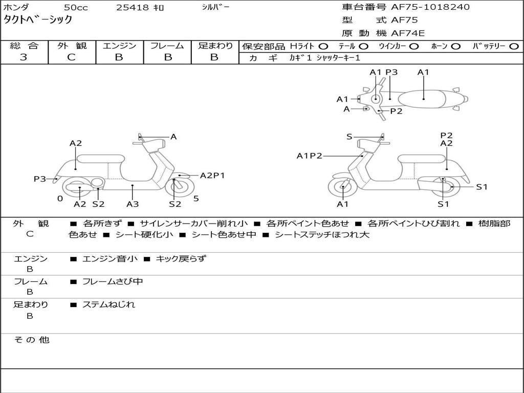| Номер рамы / VIN | AF75-1018240 |