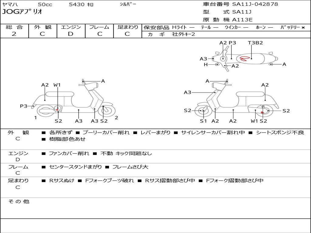 | Номер рамы / VIN | SA11J-042878 |