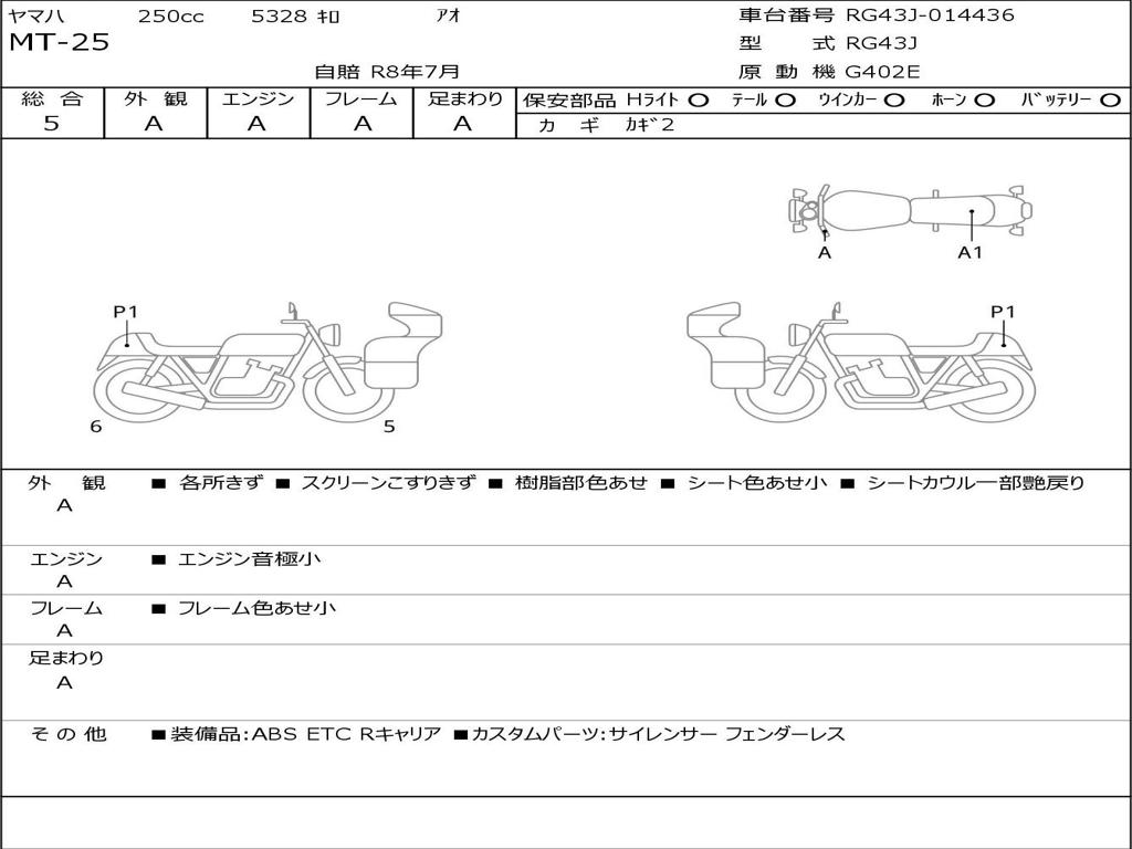 | Номер рамы / VIN | RG43J-014436 |