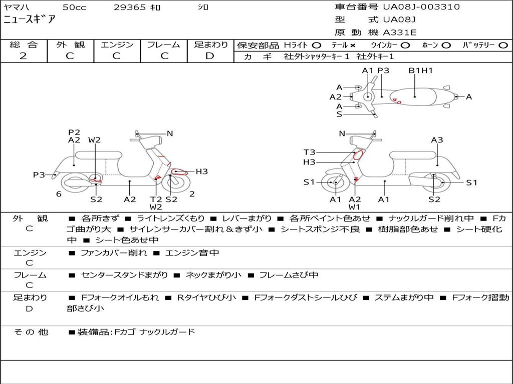 | Номер рамы / VIN | UA08J-003310 |