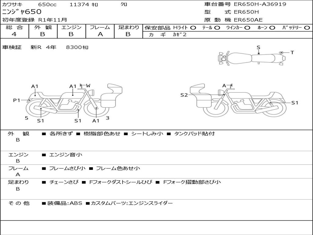 | Номер рамы / VIN | ER650H-A36919 |
