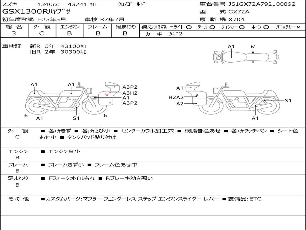 | Номер рамы / VIN | JS1GX72A792100892 |