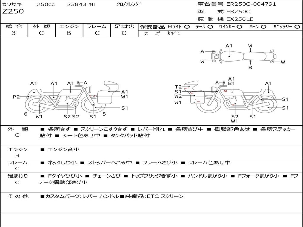 | Номер рамы / VIN | ER250C-004791 |