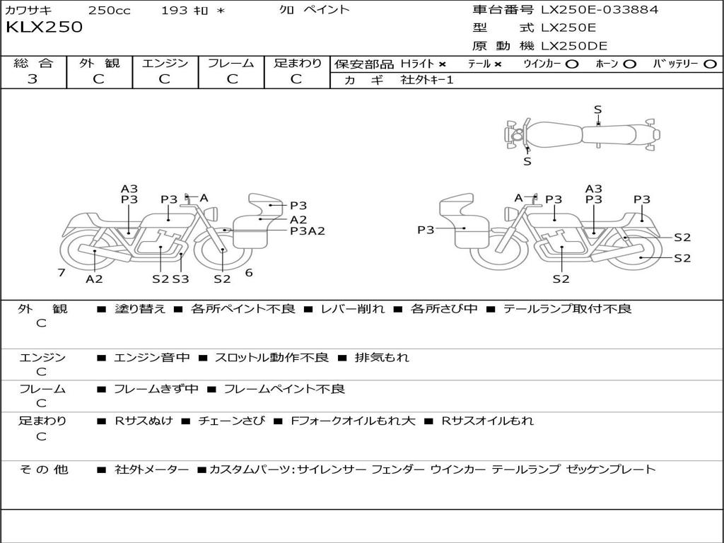 | Номер рамы / VIN | LX250E-033884 |