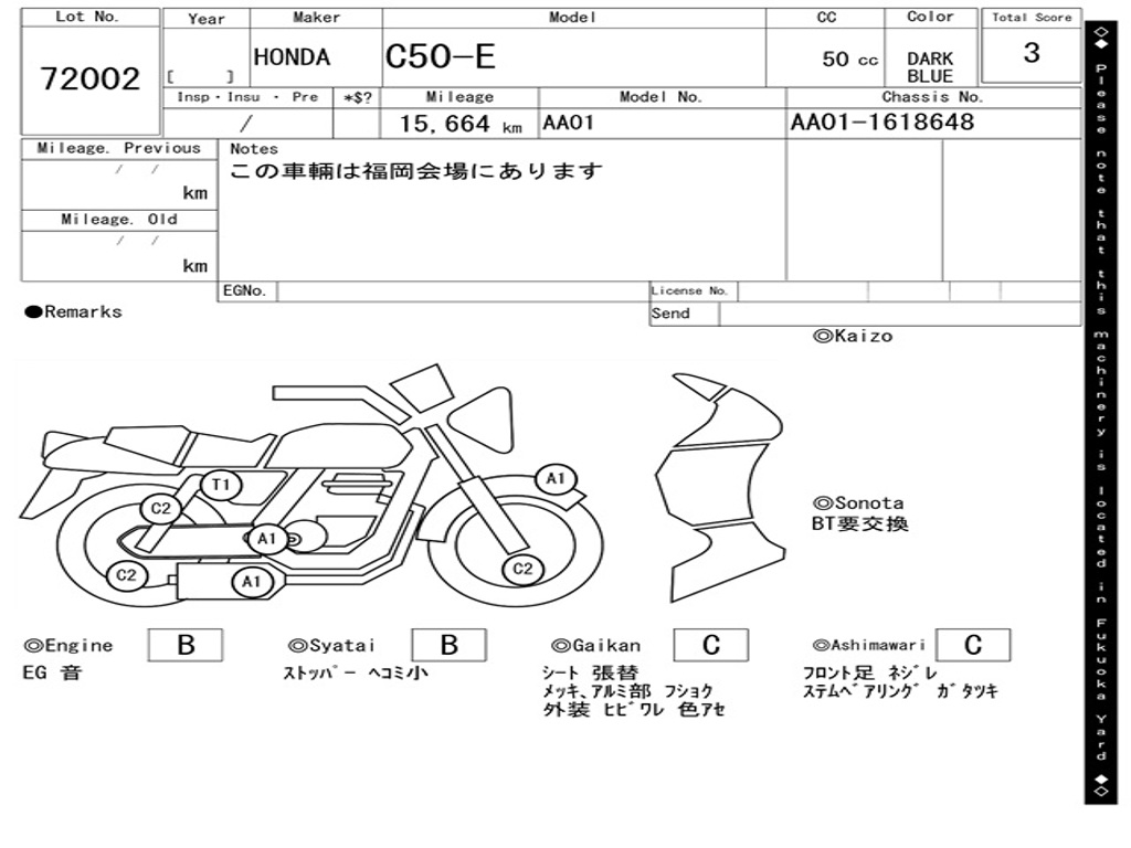 | Номер рамы / VIN | AA01-1618648 |