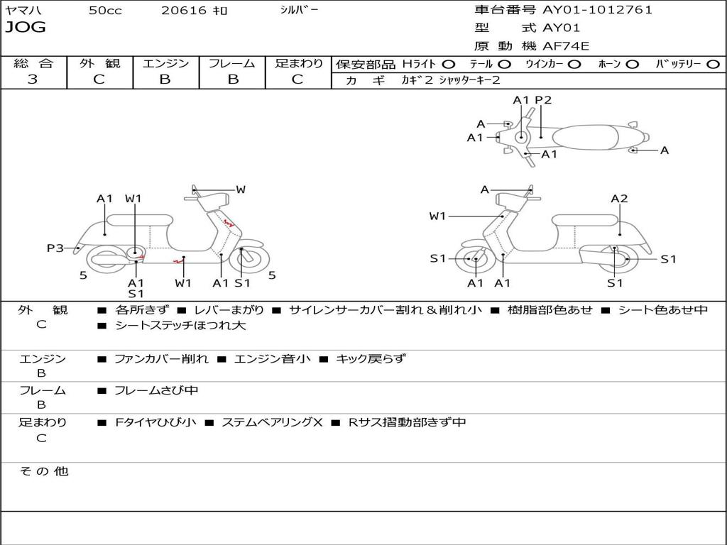 | Номер рамы / VIN | AY01-1012761 |