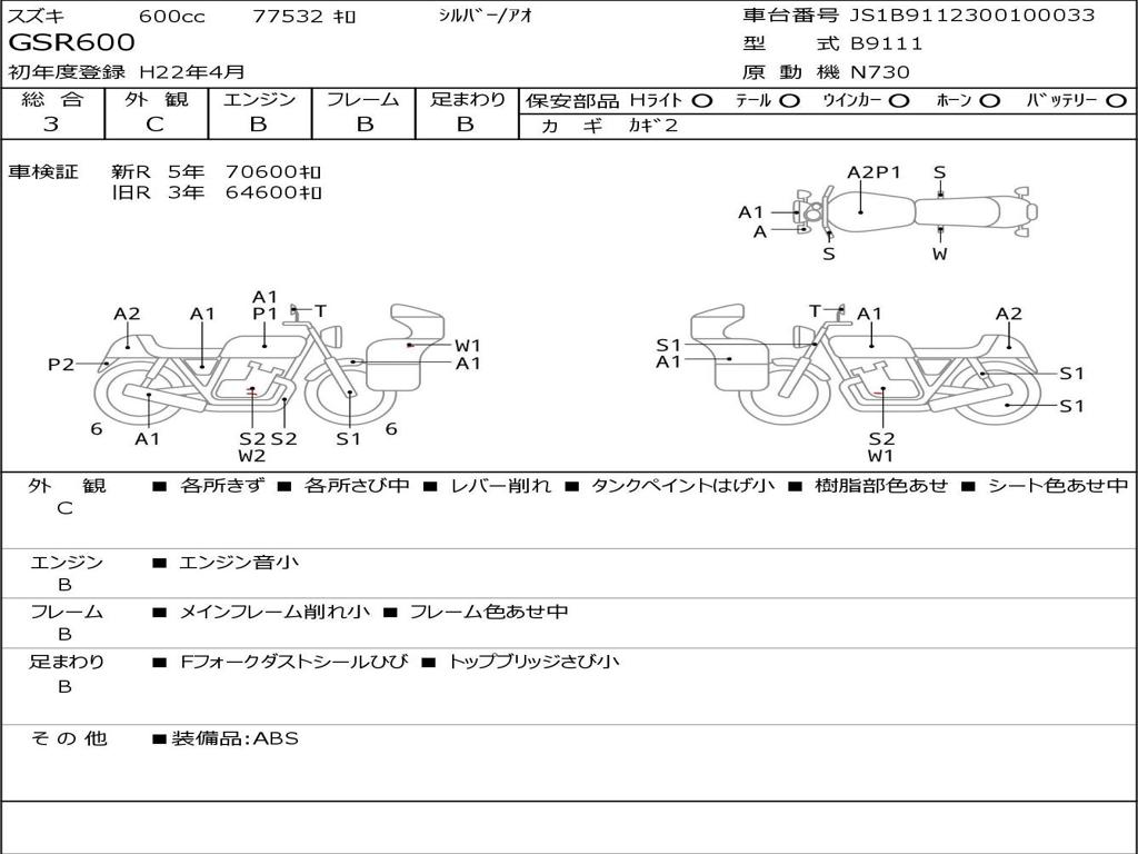 | Номер рамы / VIN | JS1B9112300100033 |