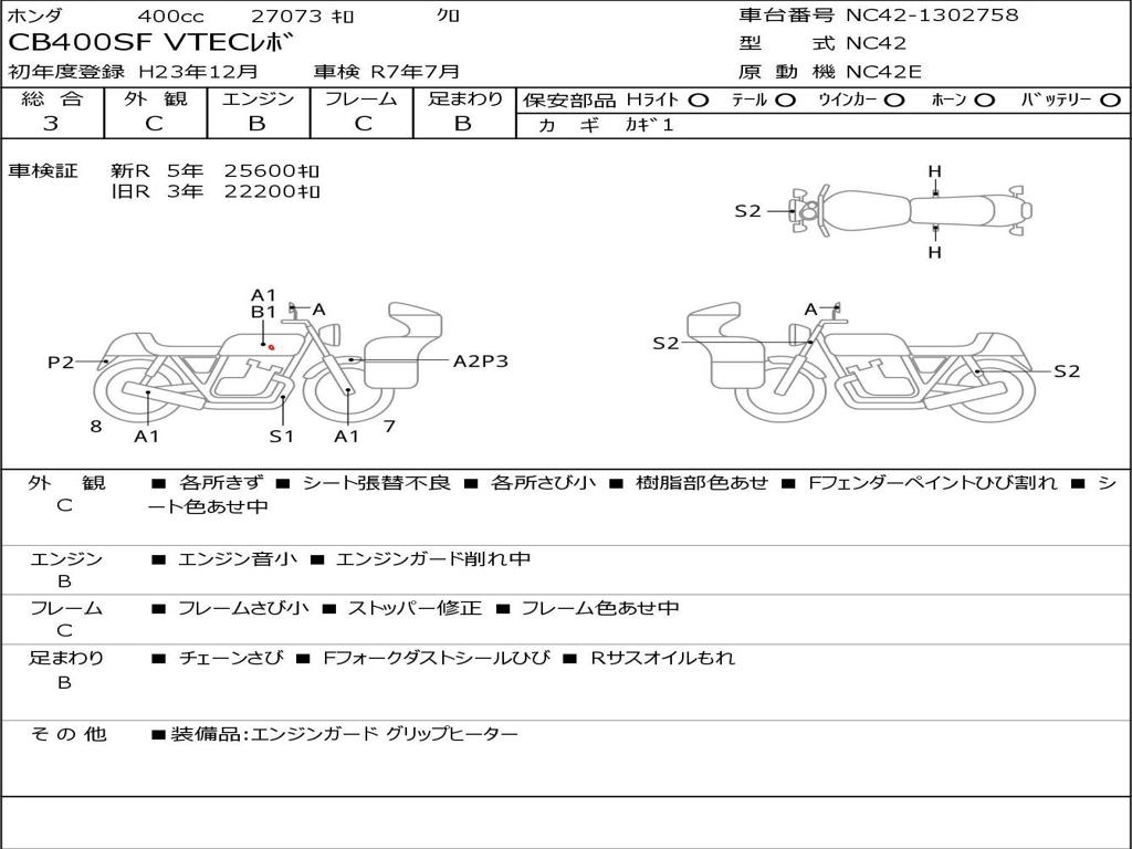 | Номер рамы / VIN | NC42-1302758 |