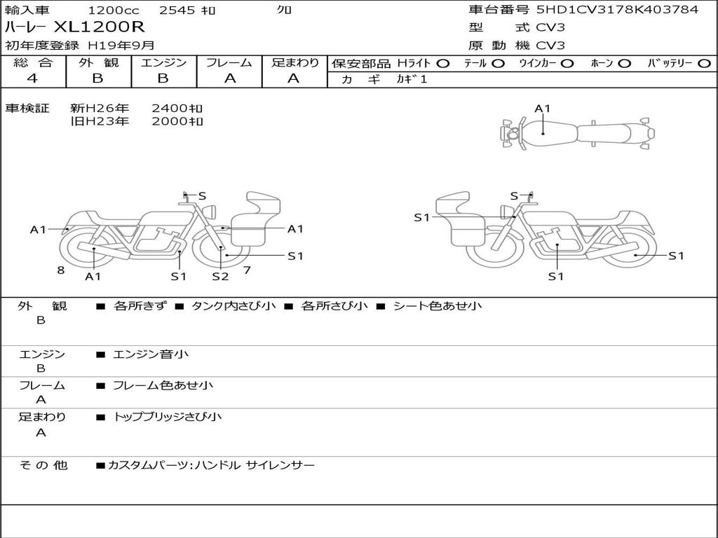 | Номер рамы / VIN | 5HD1CV3178K403784 |