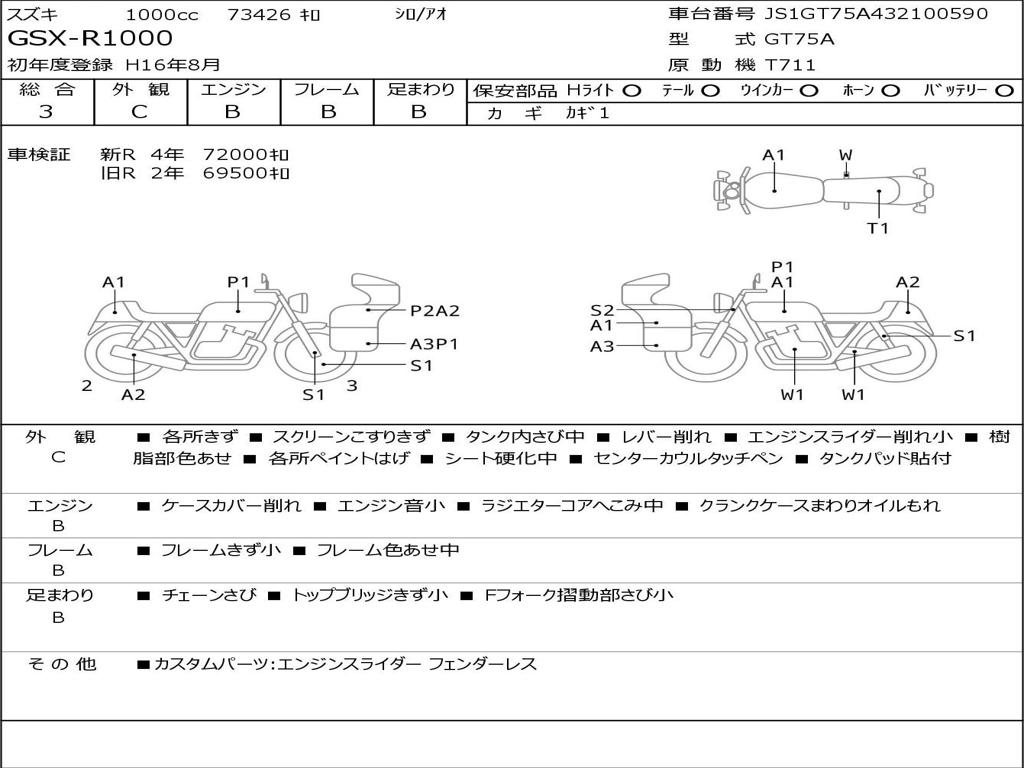 | Номер рамы / VIN | JS1GT75A432100590 |