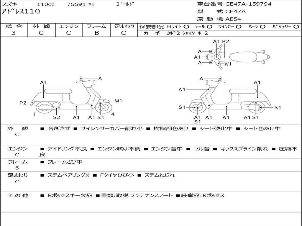 | Номер рамы / VIN | CE47A-159794 |