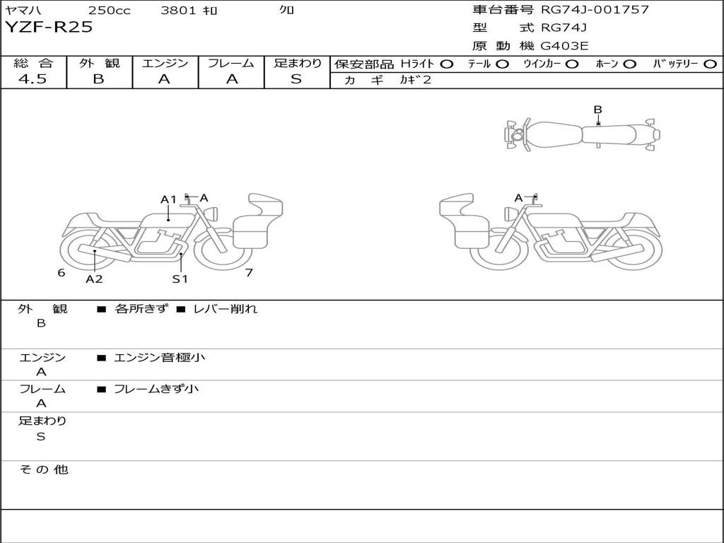| Номер рамы / VIN | RG74J-001757 |