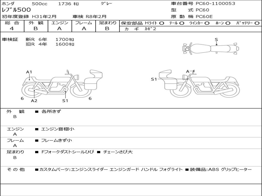 | Номер рамы / VIN | PC60-1100053 |