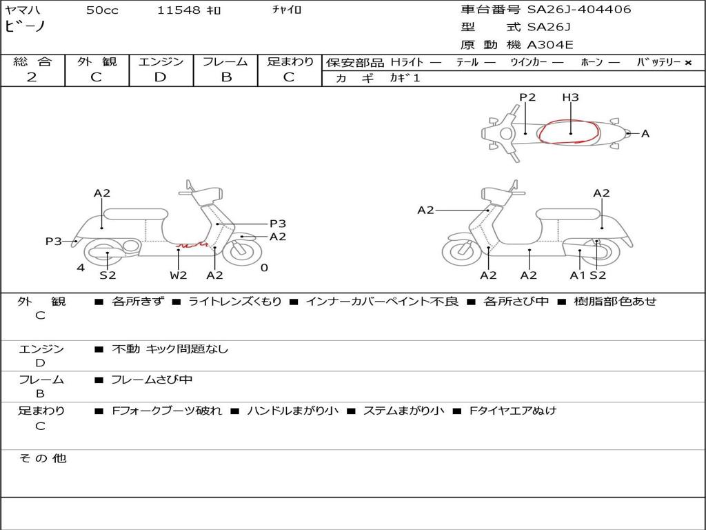 | Номер рамы / VIN | SA26J-404406 |