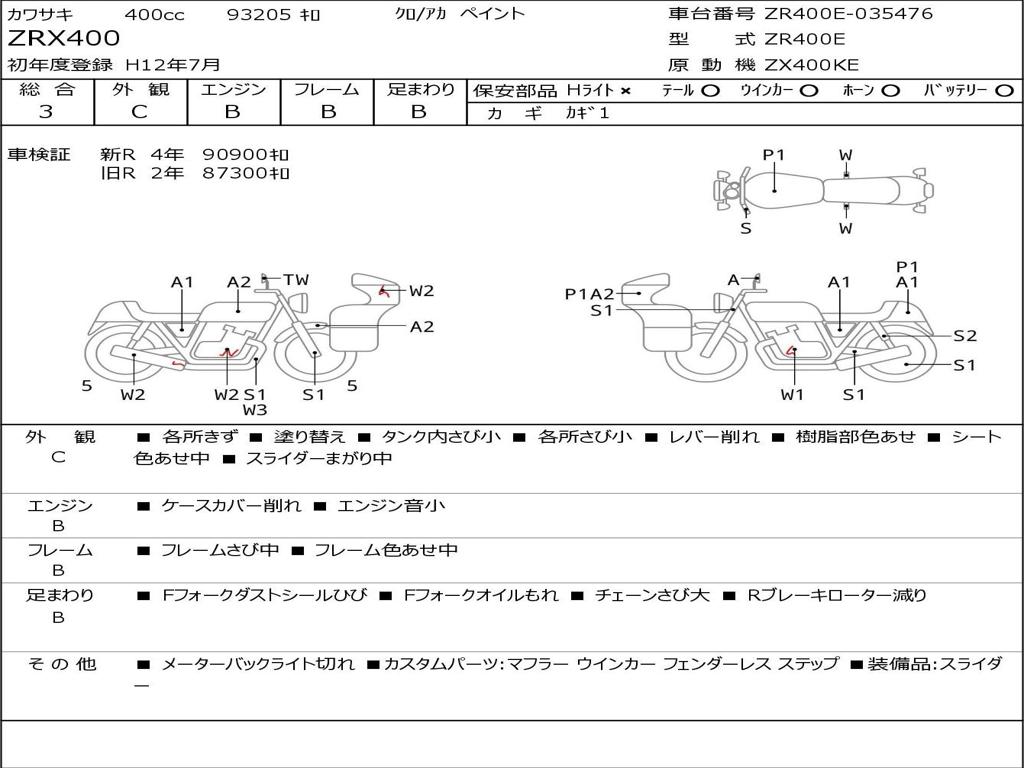 | Номер рамы / VIN | ZR400E-035476 |