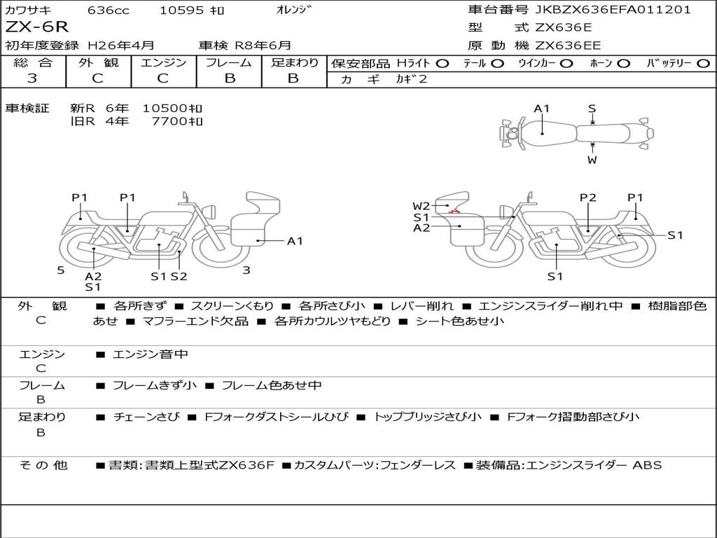 | Номер рамы / VIN | JKBZX636EFA011201 |