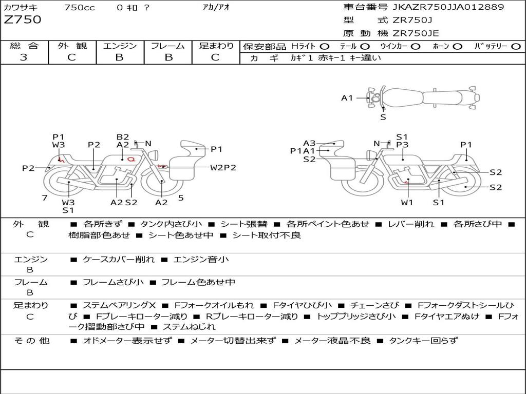 | Номер рамы / VIN | JKAZR750JJA012889 |