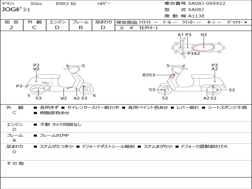 | Номер рамы / VIN | SA08J-069422 |