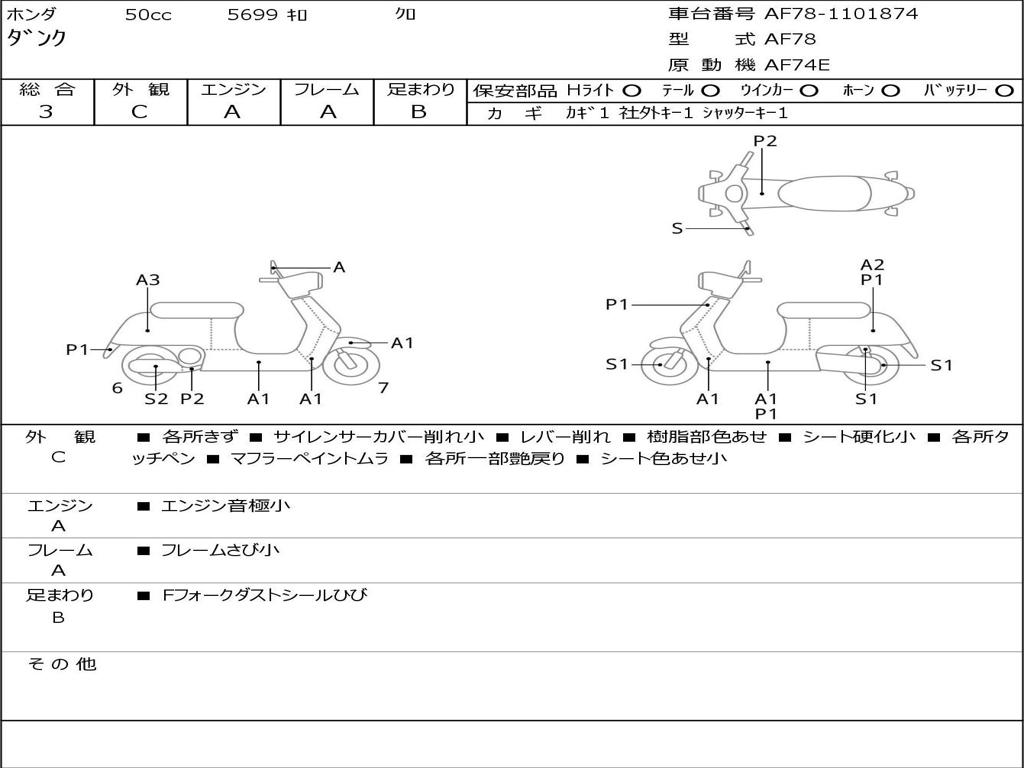 | Номер рамы / VIN | AF78-1101874 |
