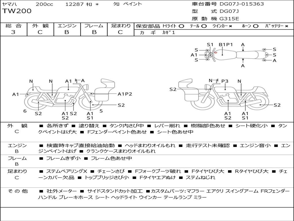 | Номер рамы / VIN | DG07J-015363 |