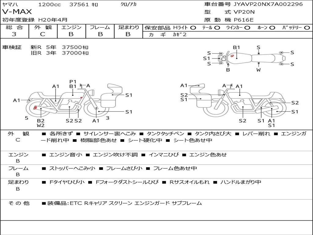 | Номер рамы / VIN | JYAVP20NX7A002296 |