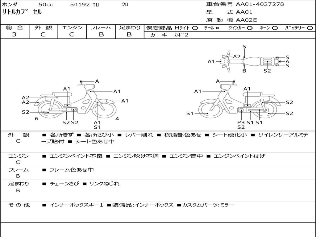 | Номер рамы / VIN | AA01-4027278 |