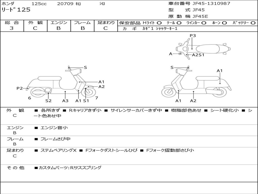 | Номер рамы / VIN | JF45-1310987 |
