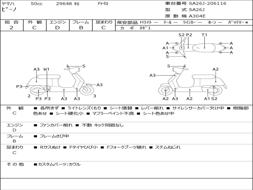 | Номер рамы / VIN | SA26J-206116 |