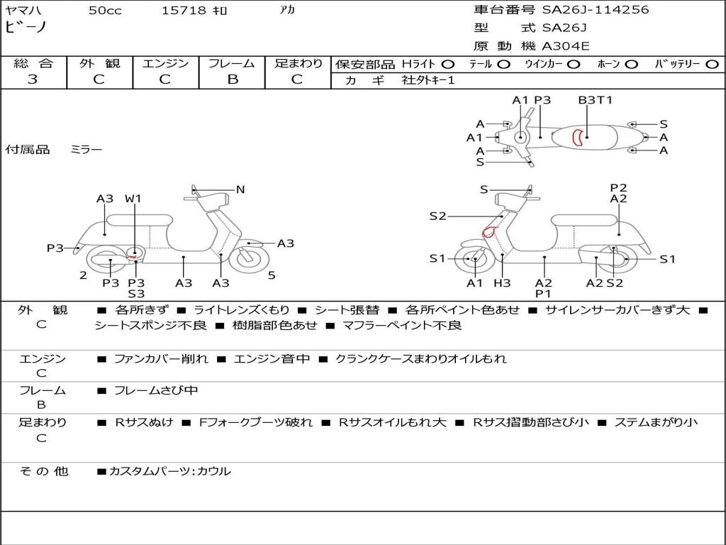 | Номер рамы / VIN | SA26J-114256 |