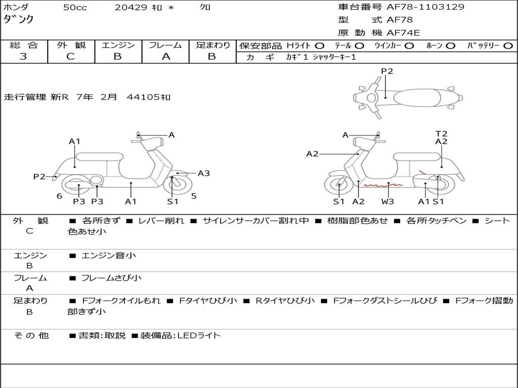 | Номер рамы / VIN | AF78-1103129 |