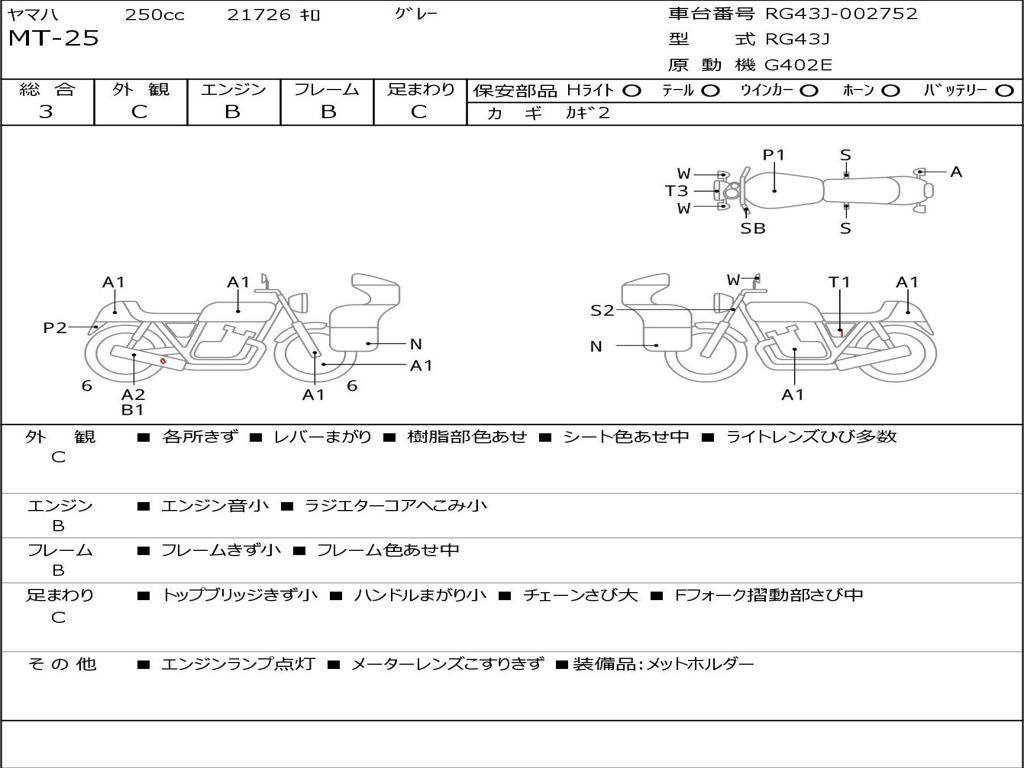 | Номер рамы / VIN | RG43J-002752 |