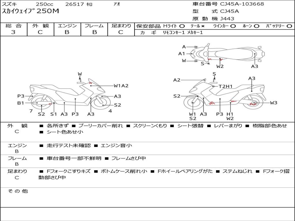 | Номер рамы / VIN | CJ45A-103668 |