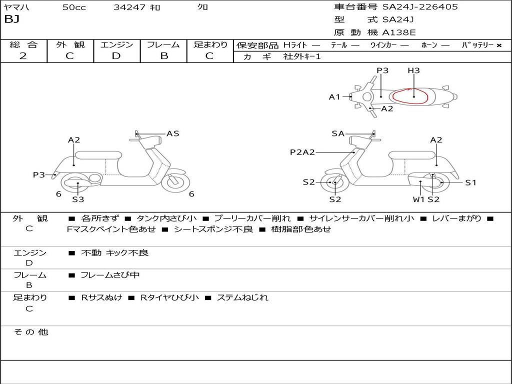 | Номер рамы / VIN | SA24J-226405 |