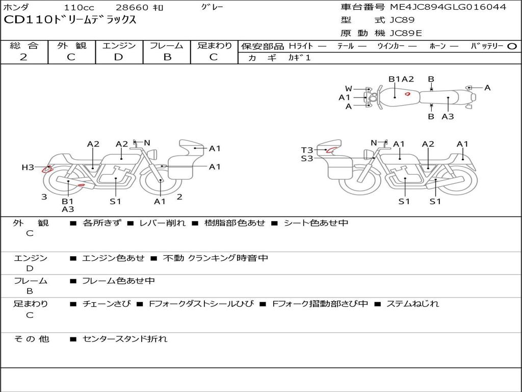 | Номер рамы / VIN | ME4JC894GLG016044 |