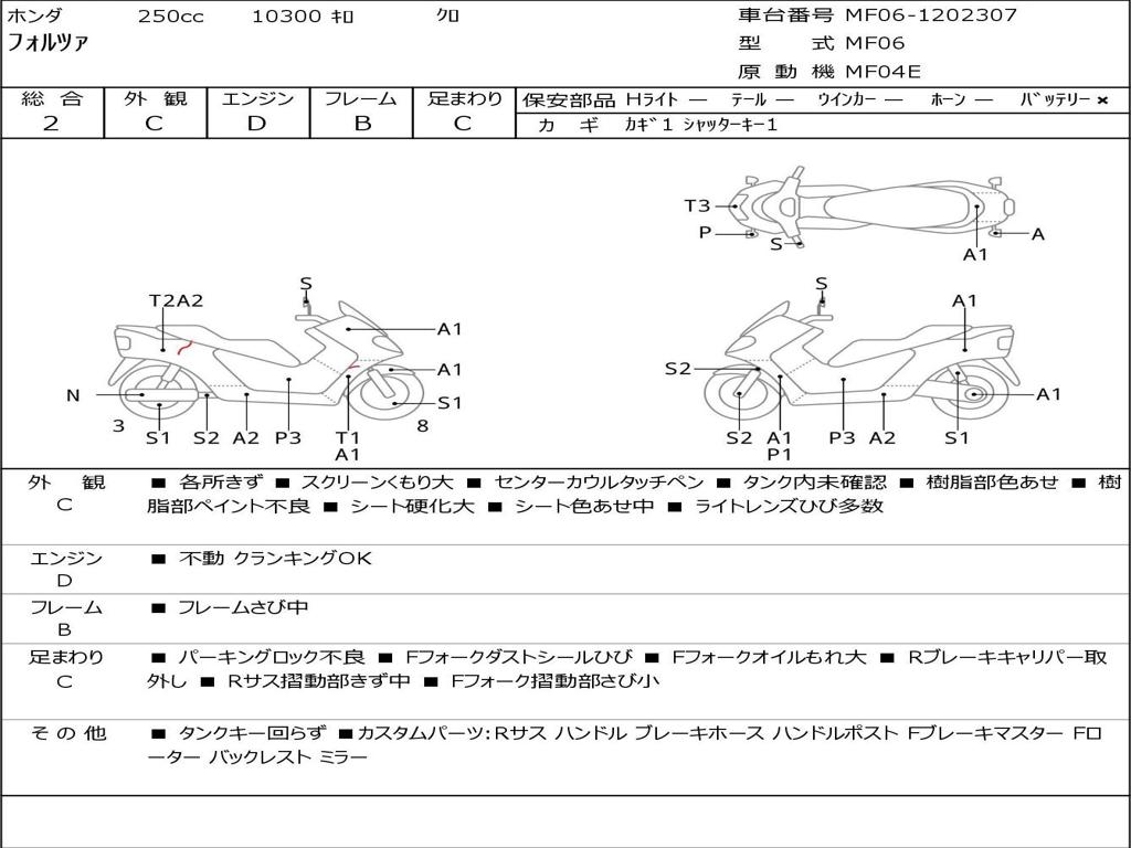 | Номер рамы / VIN | MF06-1202307 |