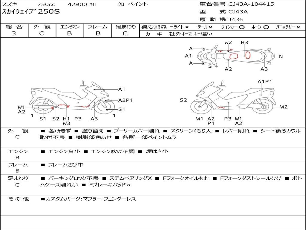 | Номер рамы / VIN | CJ43A-104415 |