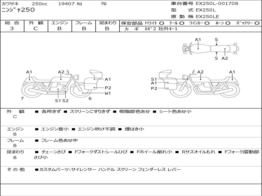 | Номер рамы / VIN | EX250L-001708 |
